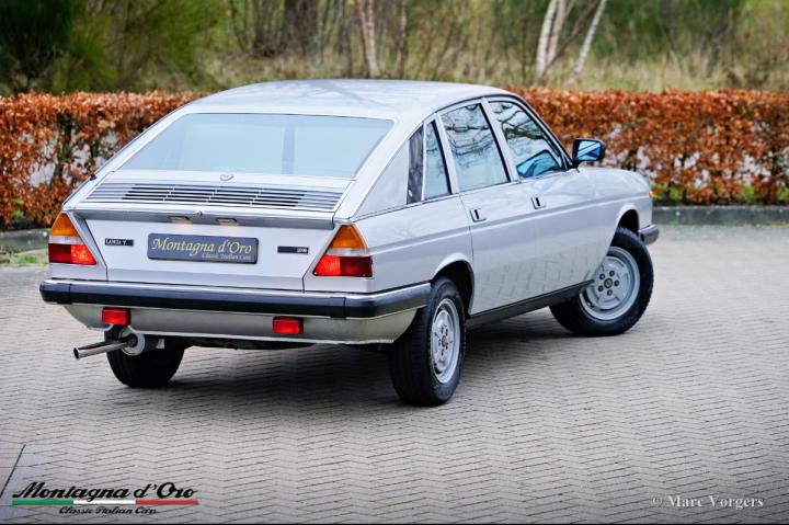 Lancia Gamma 2000 Berlina, jaar 1981. Chassisnummer ZLA830A32000066XX, motornummer 830A2000*0112XX* Kleur goud metallic (Oro Metallizato) gecombineerd met een beige stoffen interieur en donkerbruin tapijt. De Lancia Gamma Berlina van de 2e serie (1980-1984) met de 2 Liter boxermotor werd enkel in Italië verkocht, een zeldzaam model waarvan er slechts 2465 werden gebouwd. De auto is ontworpen door Pininfarina en technisch was alles aan de Gamma het neusje van de zalm. De Gamma is voorzien van volledig onafhankelijke wielophanging, schijfremmen aan alle wielen en een vijfversnellingsbak. Dit prachtige exemplaar is op 21 maart 1981 nieuw geleverd aan Francesco en Anna Marzo door de Lancia dealer in Lecce, Italië. De heer Marzo was arts in het plaatselijke ziekenhuis en de auto werd gebruikt in de weekenden en voor langere ritten. De heer Marzo overleed in het jaar 1997. Vanaf dat moment stond de Lancia in de garage. Mevrouw Marzo kon geen afscheid nemen van de Lancia. Na haar dood, ruim twintig jaar later, werd de auto door de familie verkocht. Onze contactpersoon trof de Lancia aan in volledig originele staat en met iets meer dan 21.100 originele kilometers op de teller. De auto kreeg een perfecte en professionele nieuwe lakbeurt en nieuwe achterlichten (deze vertoonden enige barsten) werden vernieuwd. Het beige stoffen interieur en het bruine tapijt zijn nog altijd in perfecte staat en als nieuw! Na interne reiniging en service van de mechanische delen hebben we de motor weer tot leven gebracht. De distributieriem wordt bij afleveringsbeurt van de auto vernieuwd. De teller staat momenteel op 21.136 kilometer. Deze Lancia Gamma Berlina verkeert in een zeer goede tot uitstekende originele staat! De auto wordt geleverd met Italiaanse documenten. Deze zeldzame Lancia Gamma Berlina is een prachtige vondst voor de Lancia verzamelaar/liefhebber.