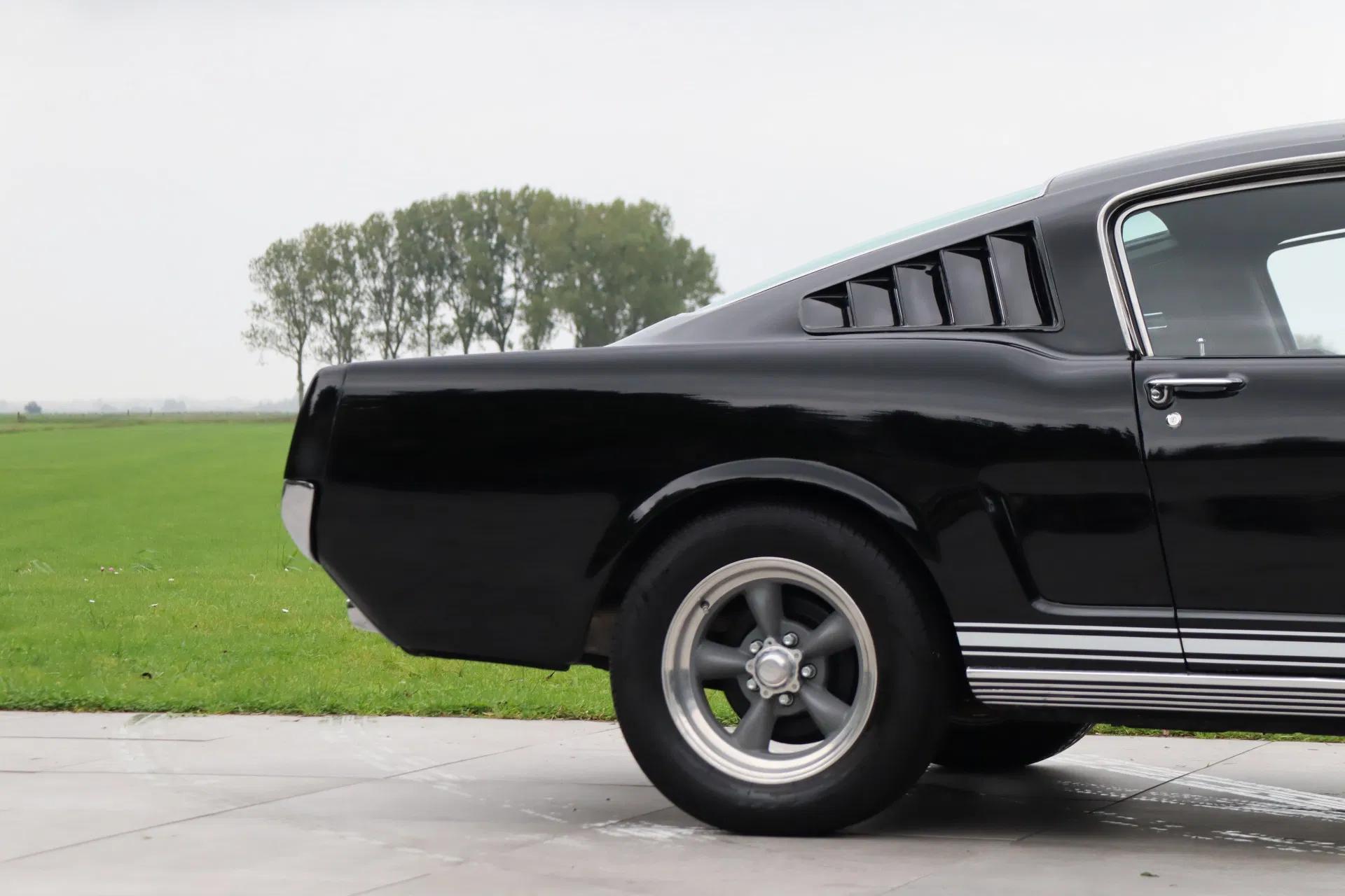 De 1966 Fastback is waarschijnlijk de mooiste Mustang ooit gebouwd en wordt door veel liefhebbers geroemd. Dit is exemplaar is zeer fraai en stoer uitgevoerd: zwart lakwerk ('Raven') met witte racestrepen. Het lakwerk heeft een diepe glans en heeft slechts minimale gebruikerssporen. Velgen maken de auto, en dus zijn fraaie 15" 'American Racing' velgen gemonteerd. De passingen van de carrosserie zijn mooi en het chroomwerk verkeert in goede staat. De ramen rondom zijn getint. De voorruit is vernieuwd en voorzien van een zonnefilter.