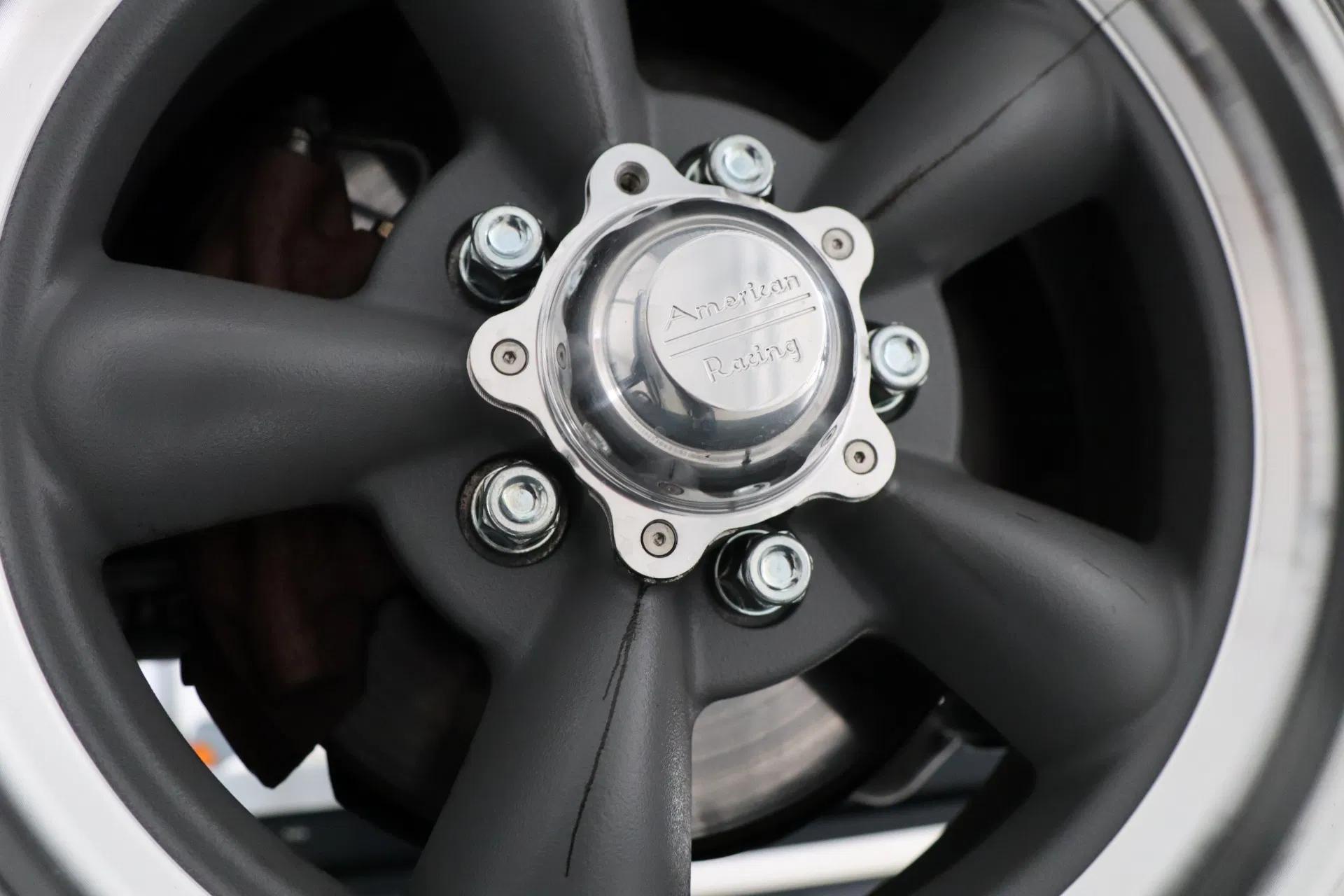 The 1966 Fastback is probably the most beautiful Mustang ever built and is praised by many enthusiasts. This example is very attractive and has a bold design: black paintwork (“Raven”) with white racing stripes. The paintwork has a deep shine and shows only minimal signs of wear. The rims make the car, so attractive 15" “American Racing” rims have been fitted. The bodywork fits beautifully and the chrome is in good condition. The windows are tinted all round. The windscreen has been replaced and fitted with a sun filter.