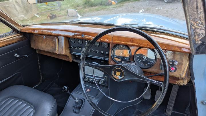 This example is finished in its original Cotswold blue exterior with dark blue Ambla interior and sympathetically restored burr walnut veneer. £4800 was spent by the previous owner with specialist restorers