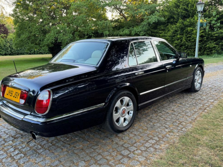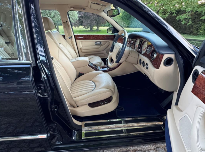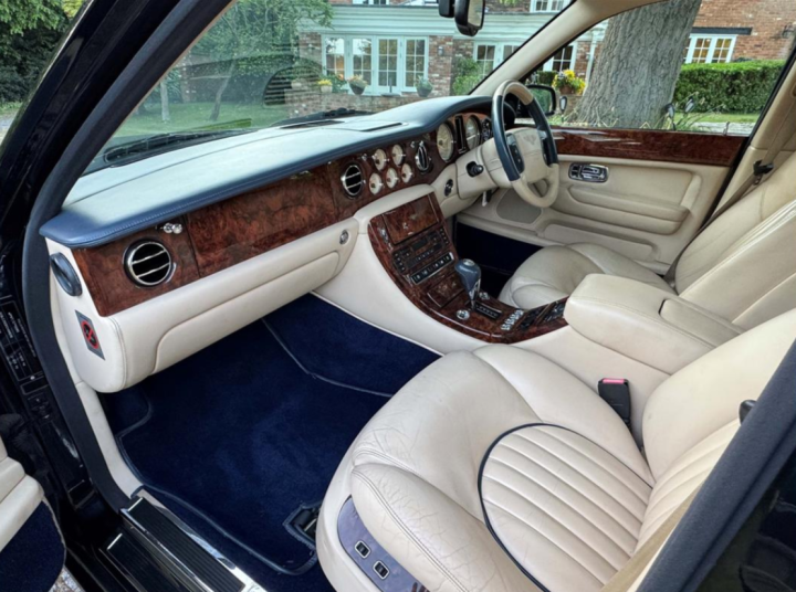 This 2001 Bentley Arnage Red Label is finished in Deep Pcean blue with a beautiful, unmarked cream hide interior piped in pale blue. The interior is further complimented by pristine walnut veneers. With the car is a detailed service history file together with a DVLA record of every mot certificate issued showing a gradual progression of mileage, through to the current mileage of just over 42,000 miles. There is no doubt that this beautiful motor car has led a cossetted life in the custodianship of its previous owners. We recently sold this fine motor car to an elderly Australian Couple who arrived in the UK in August, specifically to join a Bentley tour fom Lands End to Jon a Groats. The gentleman and his wife who own a number of Bentley Motor Cars in Australia thoroughly enjoyed their UK tour on which this Arnage Red Label performed in the anticipated faultless manner. Prior to their trip, the car was fully serviced and fitted with new tyres all round which have now covered less than 2,000 miles. Now 24 years old, the car is very rare in terms of its condition and extemely low mileage and represents exellent value at £22,500