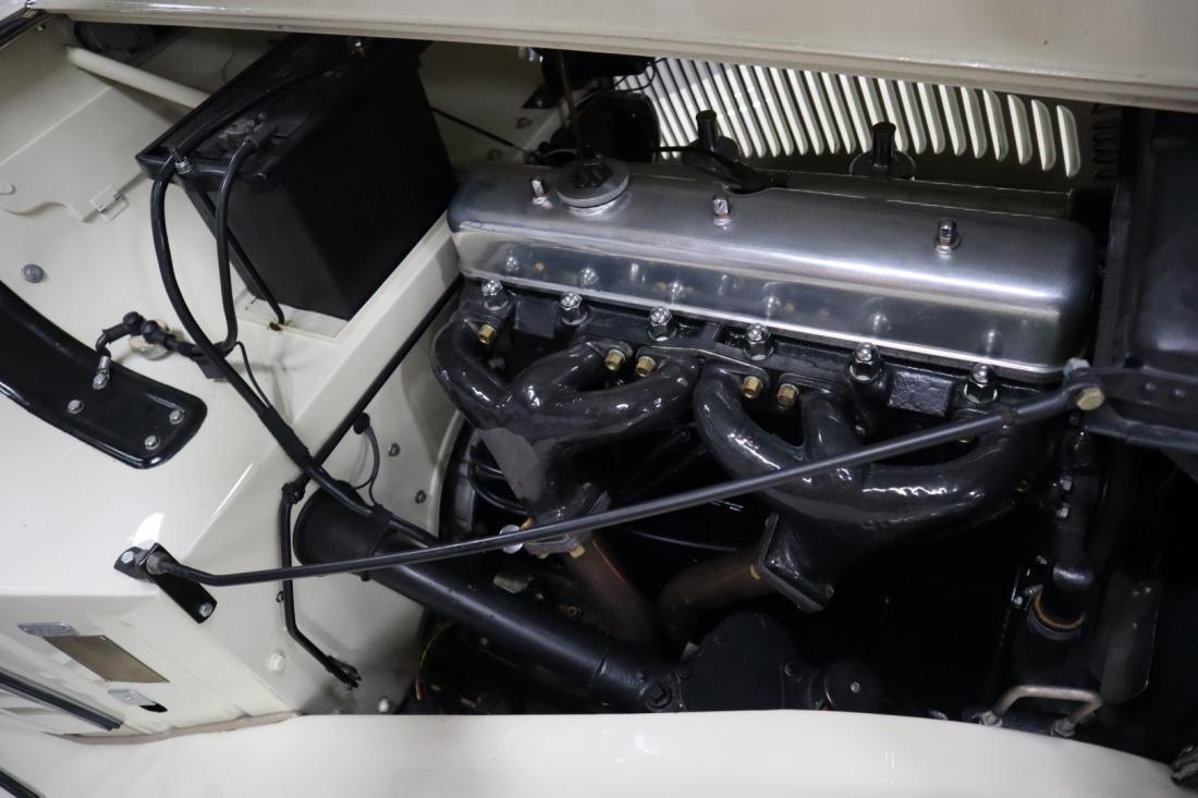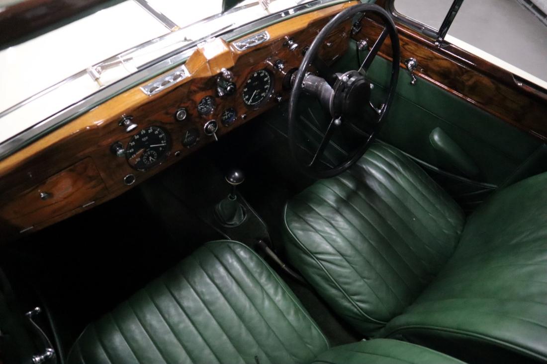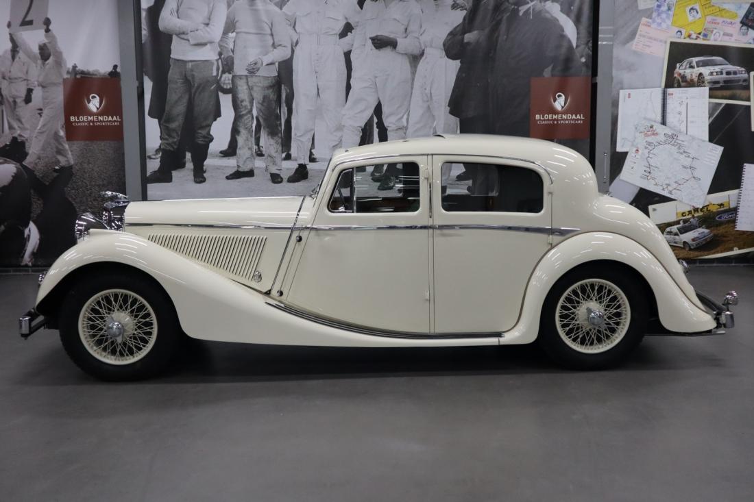 On December 21, 1937, this stately Jaguar SS 2.5 Liter Saloon left the factory to be shipped to Belgium. Here the car was registered on July 14, 1938. Many documents and the Heritage Centificate indicate that the original color was Suede Green. A somewhat dull color that fortunately was changed during the restoration to the also original Ivory. In combination with the beautiful green leather and tasteful wood finished interior, this is a real stunning combination.
